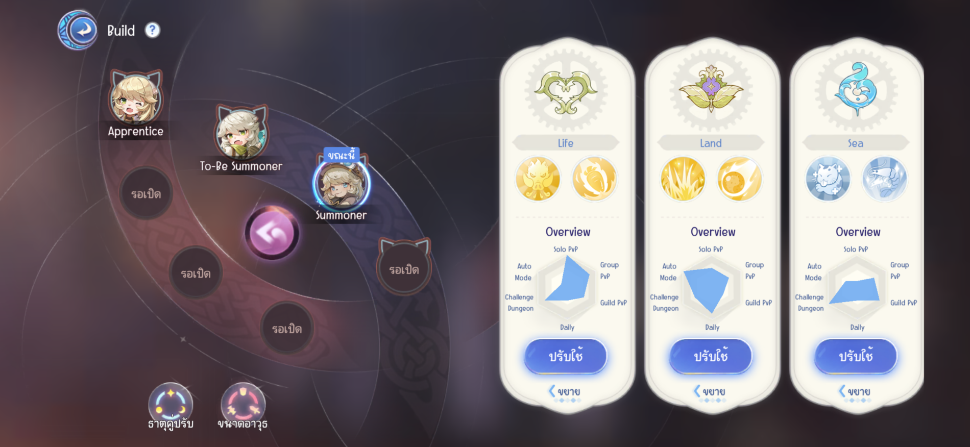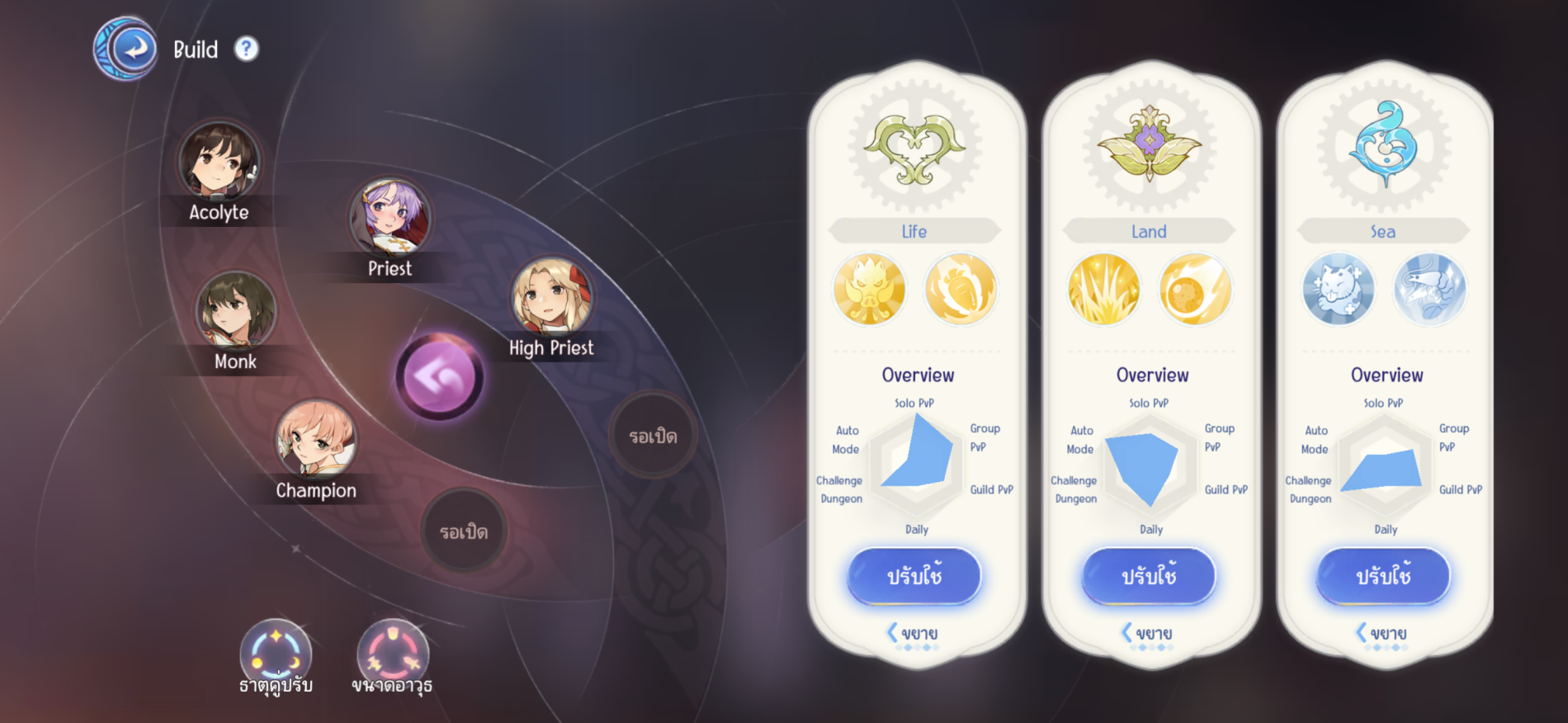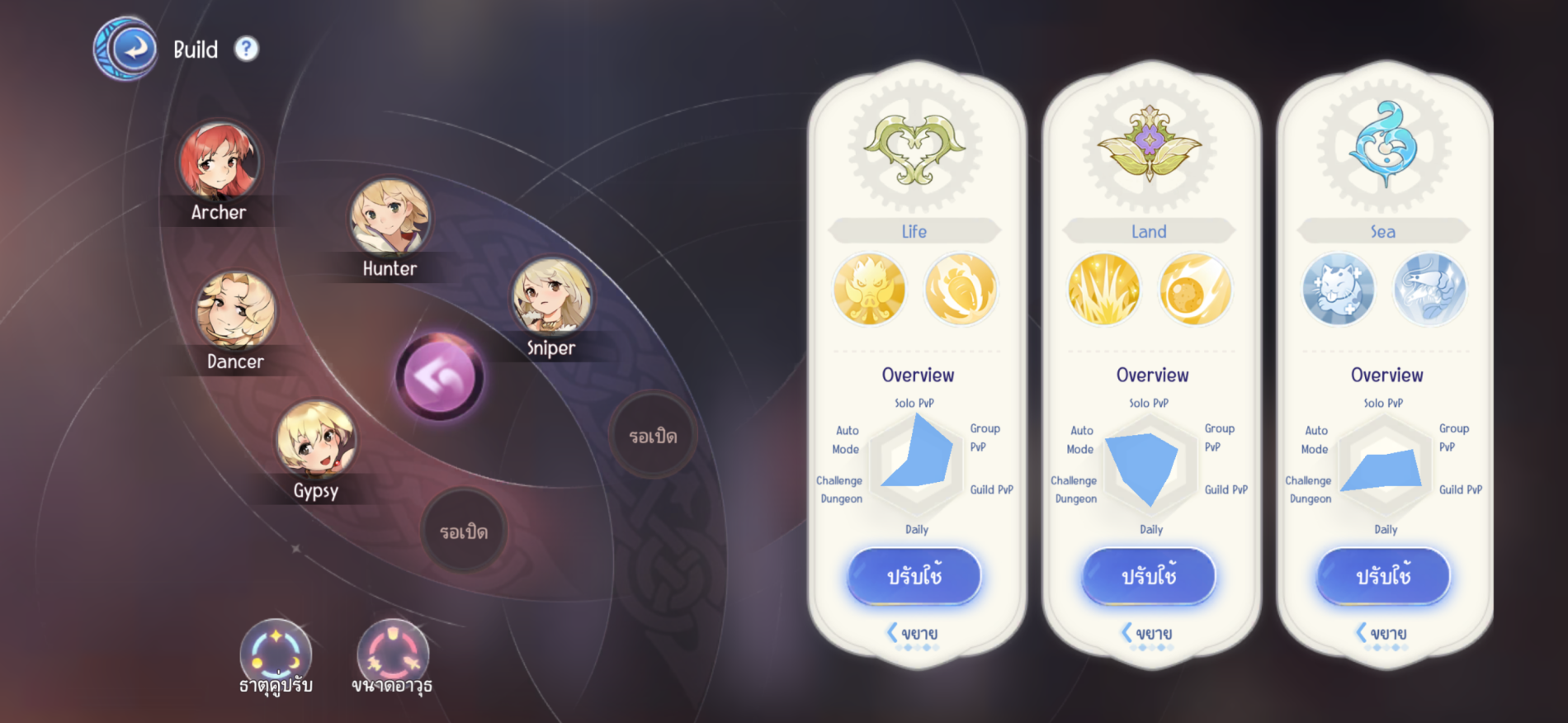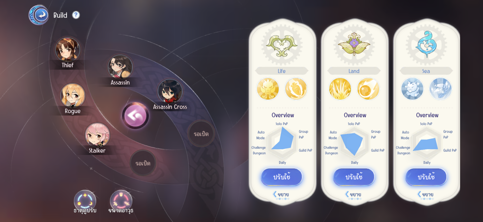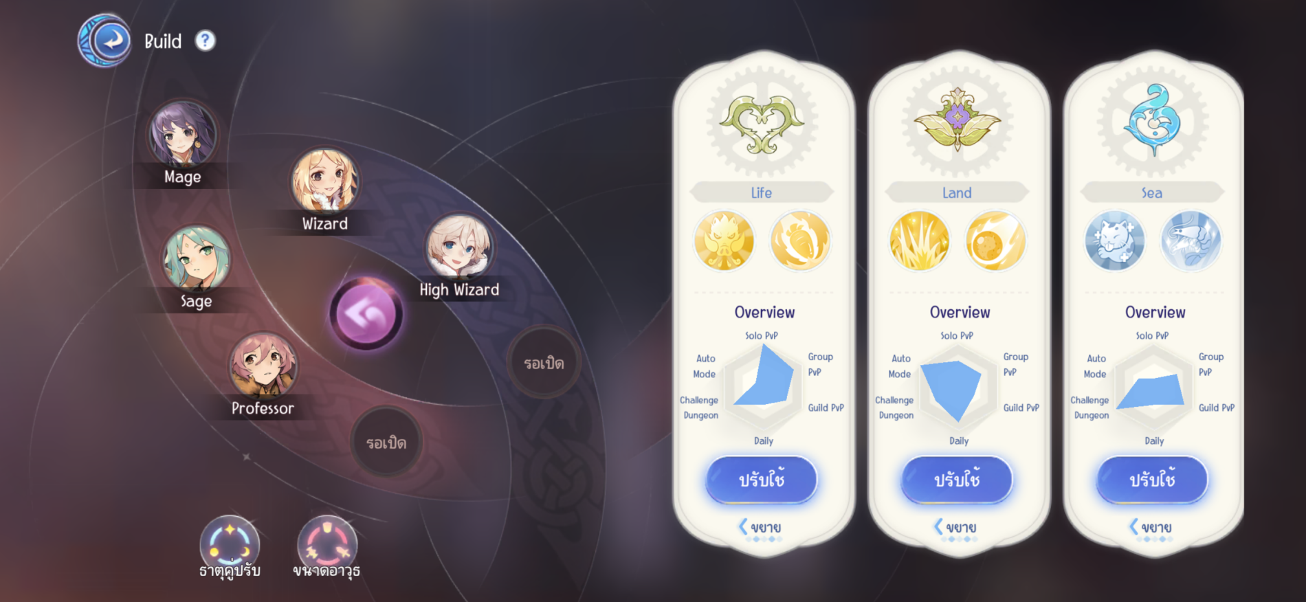 โดยปัจจุบันเปิดให้เล่นด้วยกัน 7 อาชีพหลัก ได้แก่