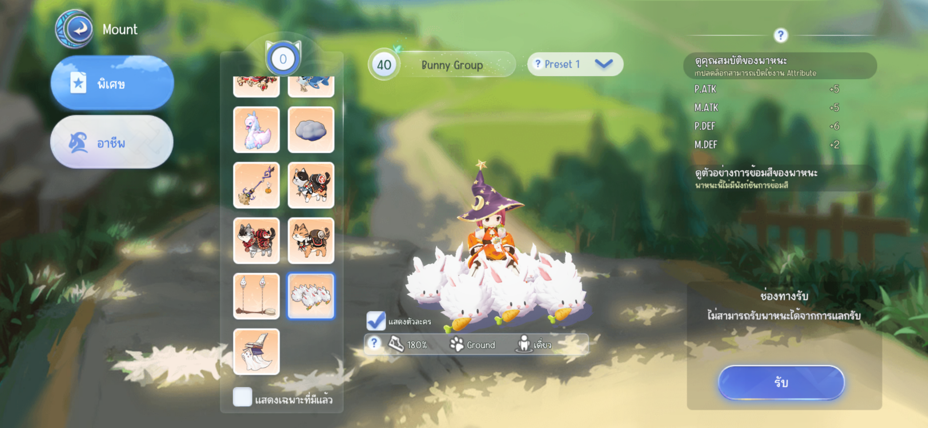 ในเวอร์ชั่นบางเวอร์ชั่น ระบบสัตว์ขี่จะมอบสเตตัสที่แตกต่างกันไปในแต่ละตัว ทำให้มีความแตกต่างกันระหว่างผู้เล่นสายเติมกับฟรีแต่ ROOC สัตว์ขี่ทุกตัวจะมอบสเตตัสที่เท่ากันทุกตัว ยกเว้นความเร็ว